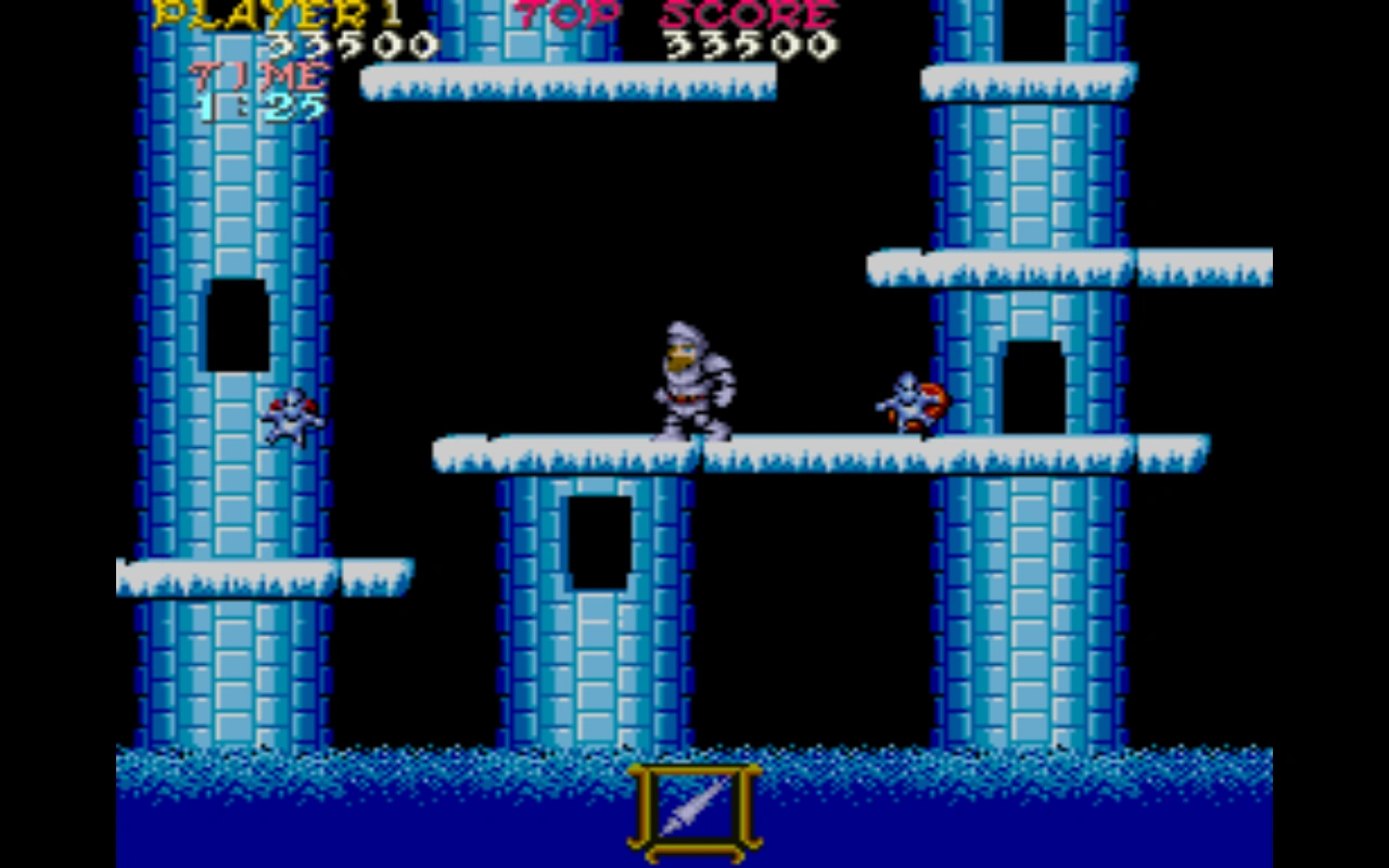 When dealing with the Blue Demons its best to hit the first one and then run to the level platform and then fire at the other two and then deal with the first Big Man. Sometimes the Blue Demons when flying will move up or down while moving forward. It sometimes looks to not have anything to do with what the player does so take that into account. Blue Demons can return after flying off screen so beware!