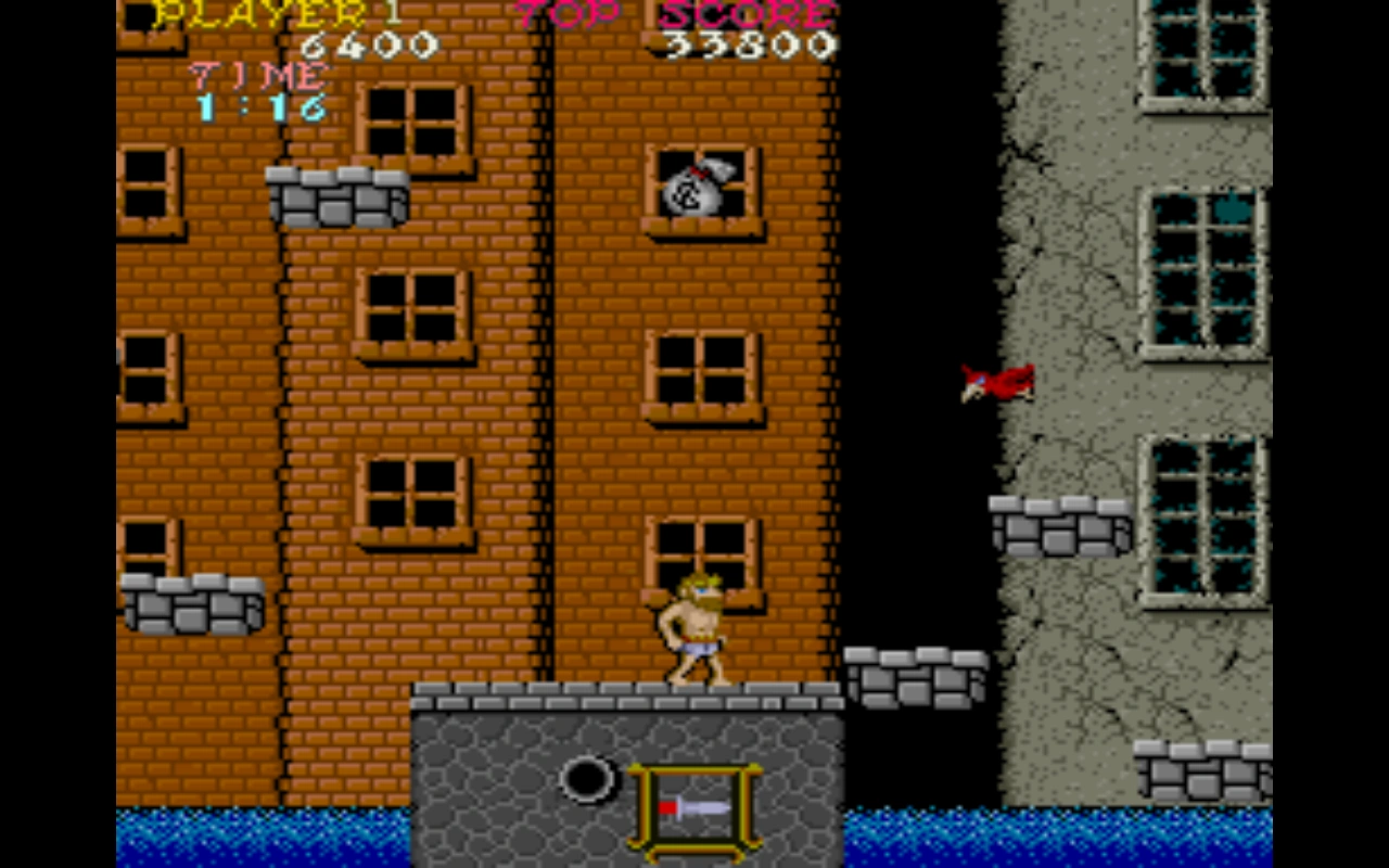 The beginning is a building landscape that serves as the checkpoint. This area features a lot of buildings and structures, Arthur passing by one of them, and then jumping platforms towards the end.