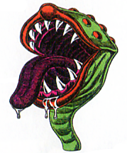 Green Monster (グリーンモンスター) is an enemy from Ghosts 'n Goblins. These man-eating plants sprout from corpses and feed upon rotting flesh. Although they lack mobility, they can attack by spitting out eyeballs from their mouths.